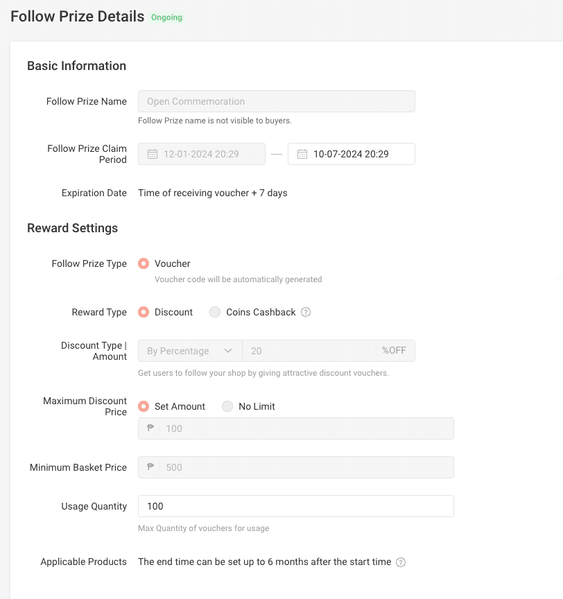 おすすめは「New Buyer Voucher」「Repeat Buyer Voucher」「Follow Prize Voucher」です。名前の通り、初回購入に使える、リピートに使える、フォローしてくれたら使えるVoucherになります。