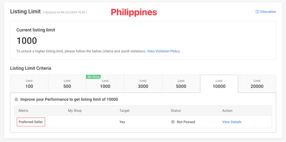 フィリピンは、プリファードを目指し出品上限10,000を目指す。プリファードになると商品画像に「Preferred」のバッジも付き、SEOが上がると言われています!(個人的にはフィリピンがおすすめ)