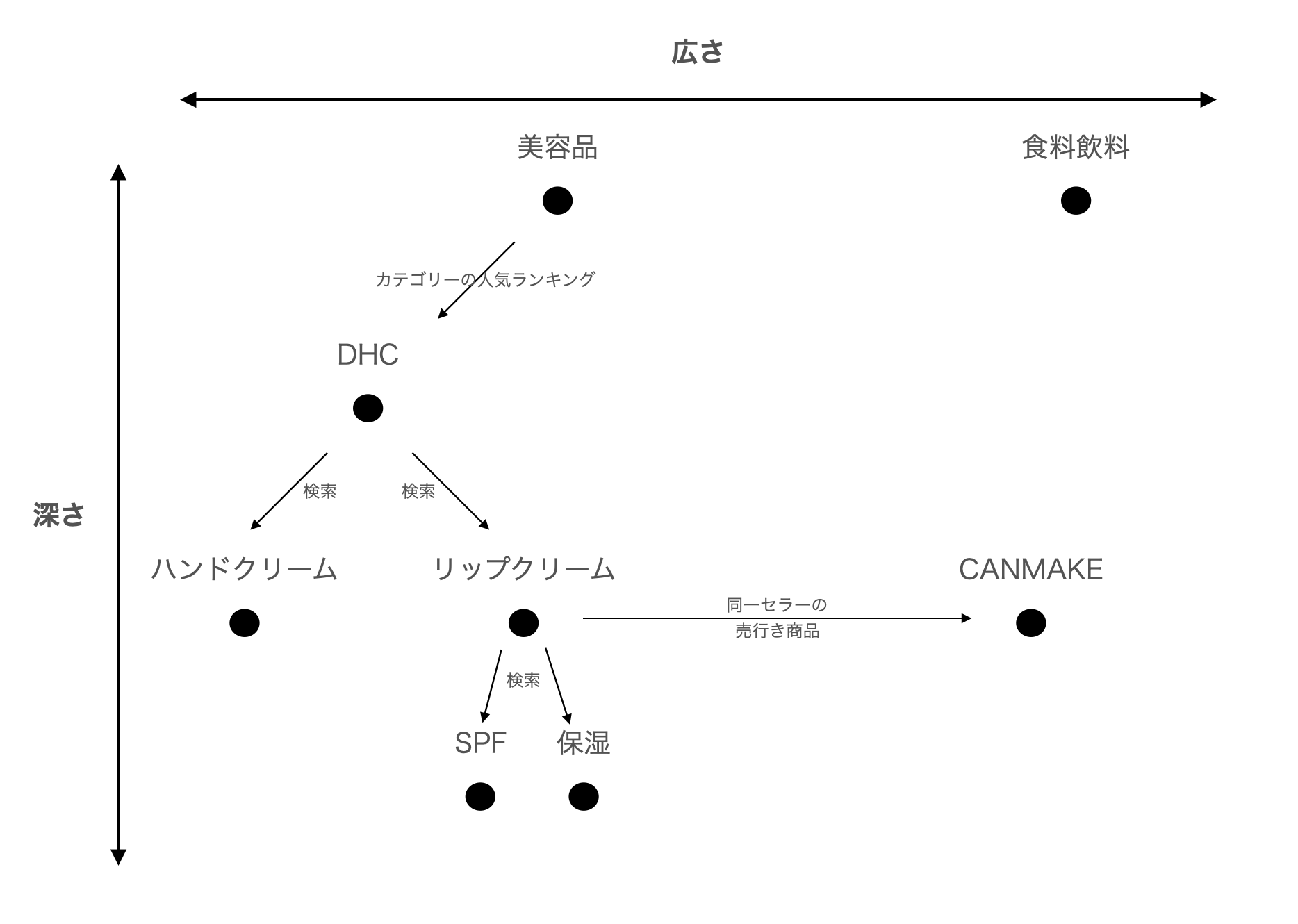 「深さ」は同一ジャンル/ブランドの商品数