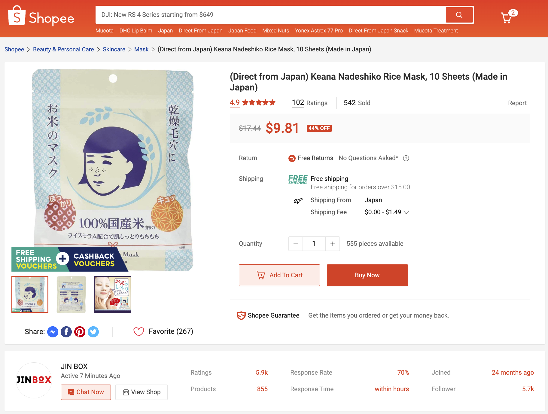 というのも、Shopeeはかなり口コミ至上主義。『安くて出品したての商品 VS 高くて口コミが溜まっている商品』だと、後者の方が売れます。