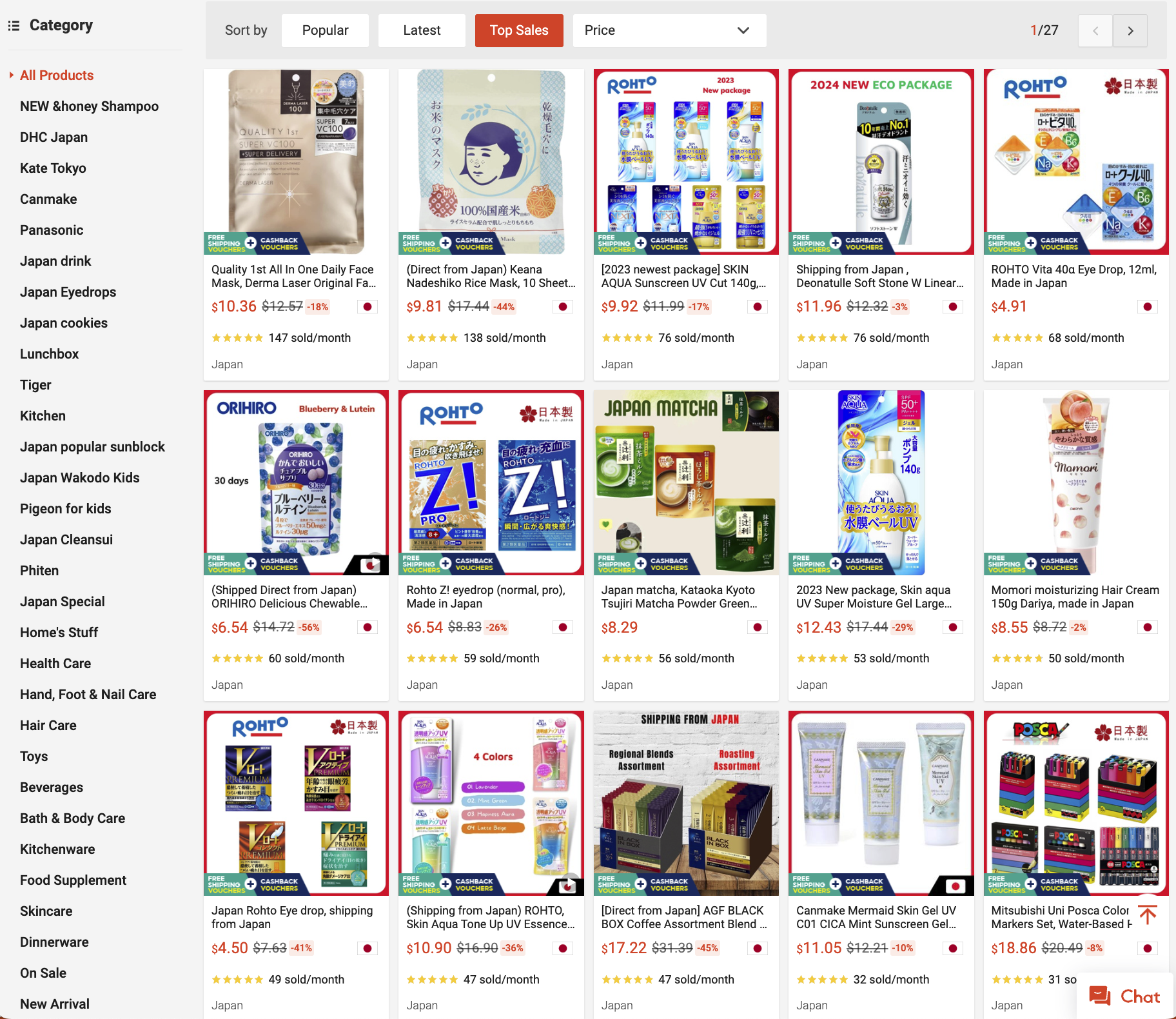 というソートができますが、特に意図がなければtop salesを選択すると良いです。売れ筋の商品を見ることができます。