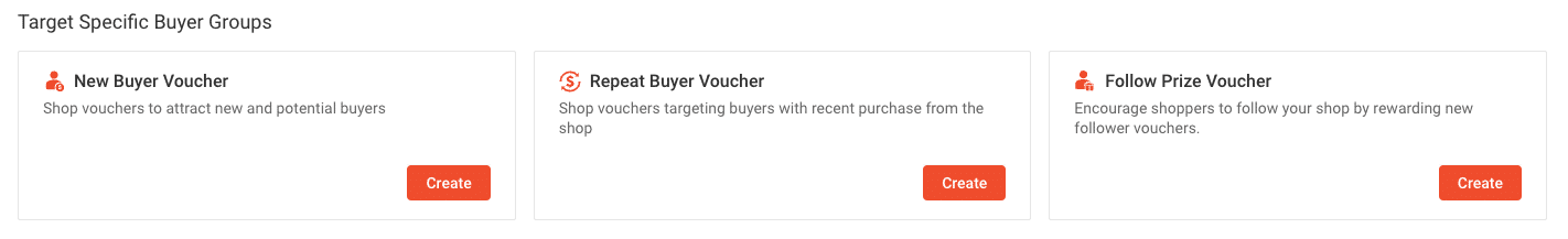 おすすめは「New Buyer Voucher」「Repeat Buyer Voucher」「Follow Prize Voucher」です。名前の通り、初回購入に使える、リピートに使える、フォローしてくれたら使えるVoucherになります。