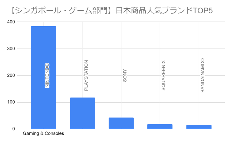 Switchの強さは予想通りですが、アクセサリ系は高価格が強く、品質へのこだわりが感じられます。ゲーム部門においてもアジアの先進国らしい内訳となりました。