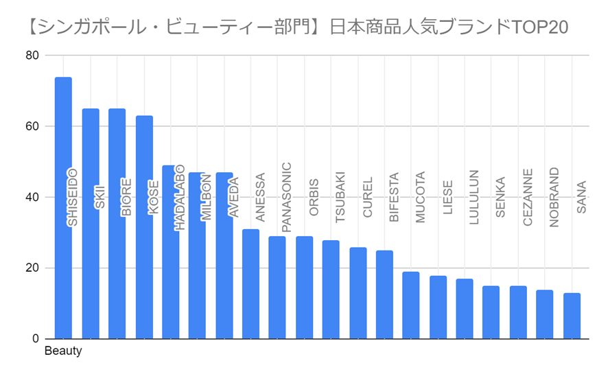 Shopeeシンガポール/ビューティー部門におけるブランド別販売数TOP20(Shopee公式データより作成)[/caption]
