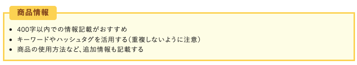 ②顧客が気になる情報が全て商品説明に記載する